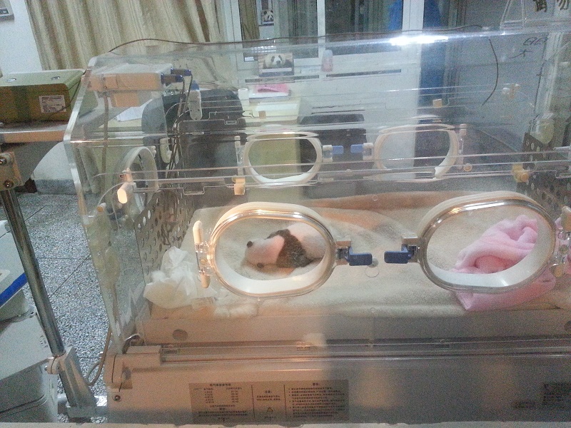 Bébé panda en couveuse