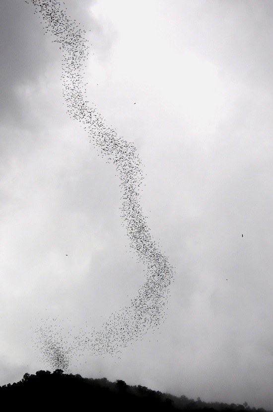 Envol de chauves-souris 11 janvier 2016 550 × 828 Envol de chauves-souris Plus d’un million de chauves-souris qui sortent de la Deer cave à la tombé de la nuit.
